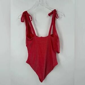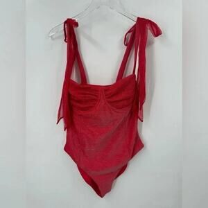Soak up some sun in this ribbed one-piece swimsuit supported by thin underwire and tie-shoulder straps.