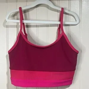 Beach Riot Eva Bikini Top only Raspberry Colorblock. New without tags. Size medium. Has pin size snags, hardly noticeable. Please see all pictures for style, condition and measurements.