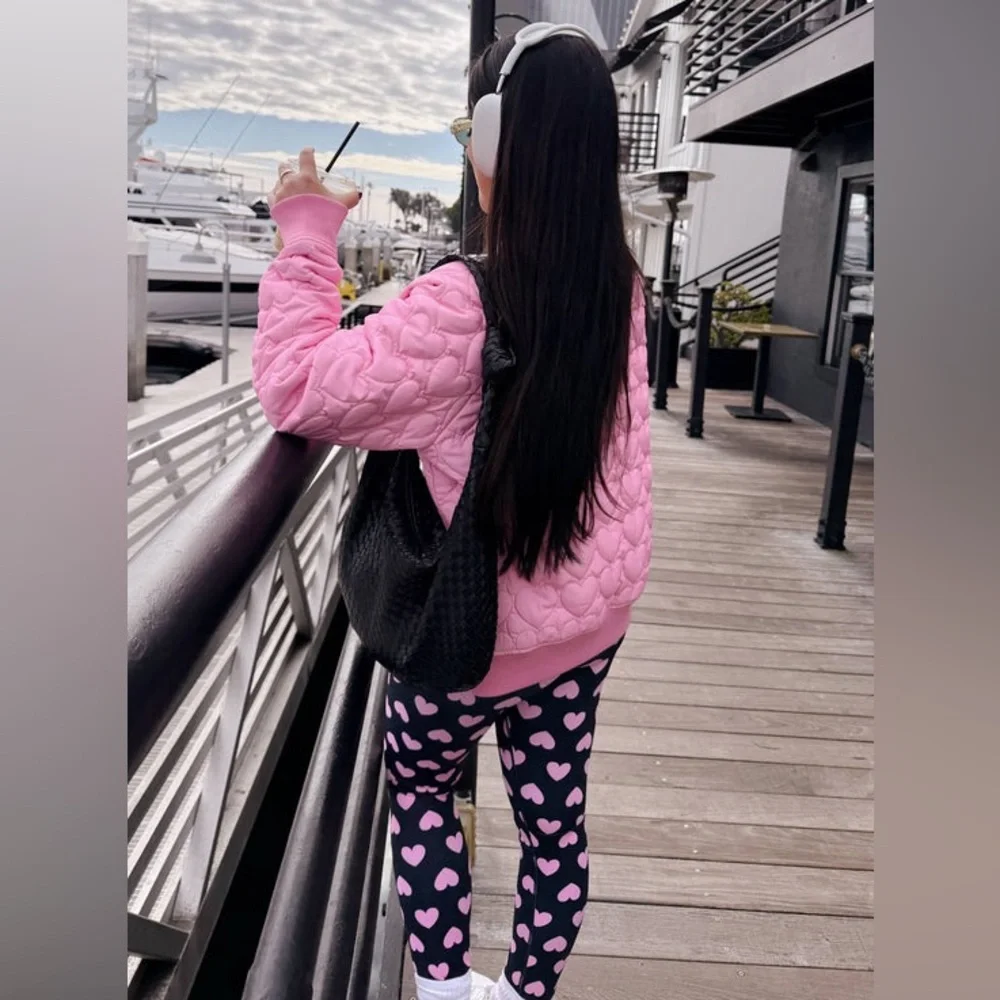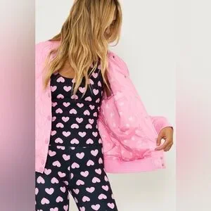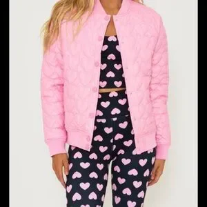 Beach Riot bomber jacket pink quilted hearts, excellent used condition. Oversized fit