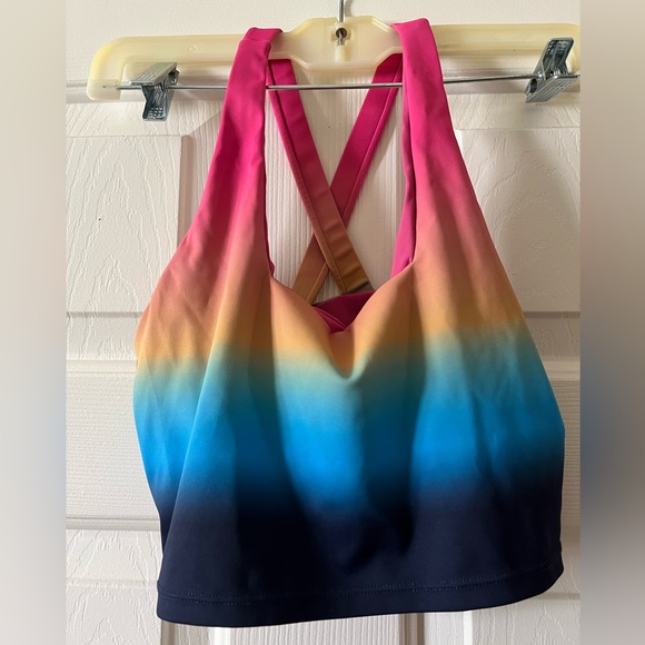 Stylish ombre sports bra with crisscross back. Ideal for active wear.