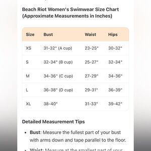 @229flora hi, I will measure it for you tomorrow. It might help for you to look at the size chart on the beach riot website too.