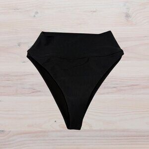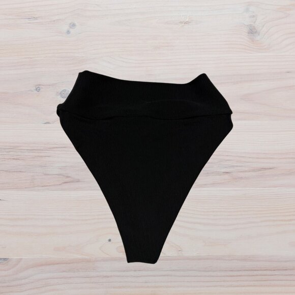 A bikini bottom finished with a flattering banded high waist and minimal back coverage.
