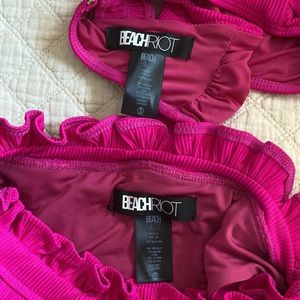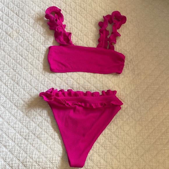 Beach Riot Hot Pink High Waist Ruffle Bikini Set