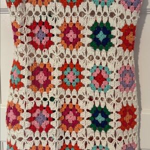Chic crochet dress with vibrant colors.