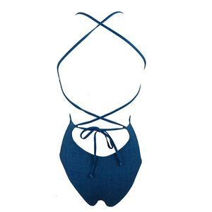 * NWT * The Josie One Piece is a denim-like swimsuit with laser cutout detail on the front and super sexy lace-up back detail. This style also features a straight across neckline and medium back coverage