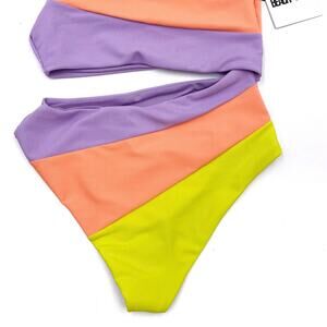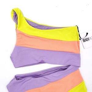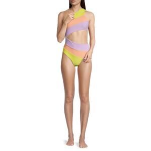 Beach Riot Joyce Cut-Out One-Piece Swimsuit Multi Colorblock One Shoulder Sz M