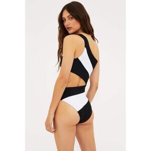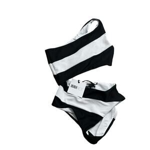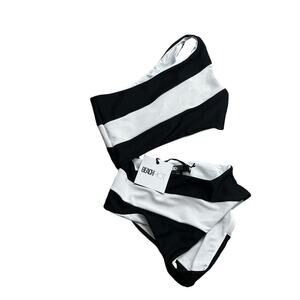Beach Riot Joyce One Shoulder One Piece Swimsuits Striped Black White Size S NWT