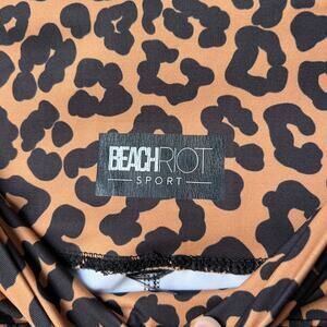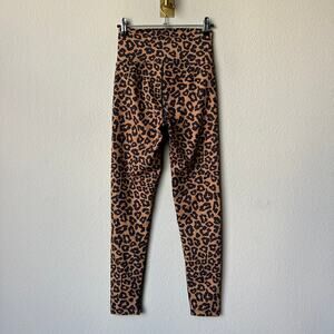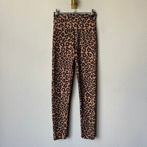Beach Riot 'Piper' tan and black leopard leggings. Full-length, high-rise active pant with 4-way stretch compression and moisture wicking fabric. Made in USA. Size tags has been removed, best fit a small - 12.5" waist (unstretched); 11" rise; 28" inseam.