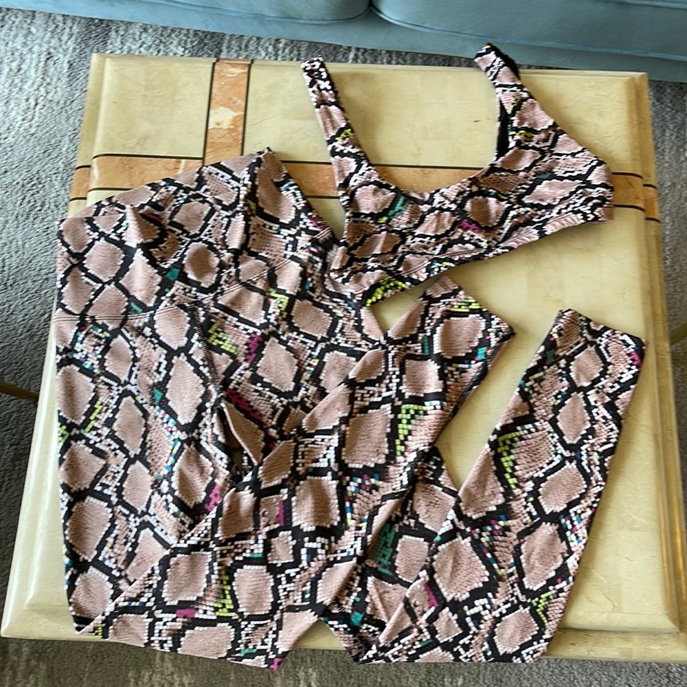Beach Riot Matching Set with Snakeskin Print with Leggings and Sports Bra