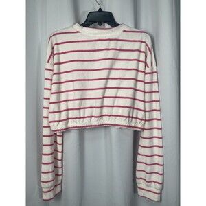 Cute, cozy and cropped, this striped sweatshirt shirt is cut from super comfy Terry cloth, the fabric youve loved wrapping yourself in since your first bath. Size extra large with a 24 inch chest, 24 inch arms and a 17 inches in total length. Brand new without tags. Comes from a smoke-free home. Retail cost $98