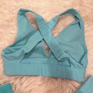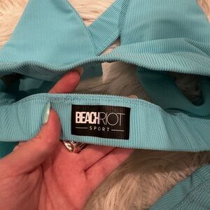 Beach Riot Neon Turquoise Ribbed Workout Set Sz S