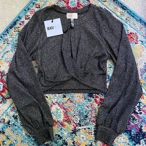 NWT New with Tags Never Worn Beach Riot Marley Crop Top Long Sleeve Black Metallic. Size Medium. Purchased for $88.