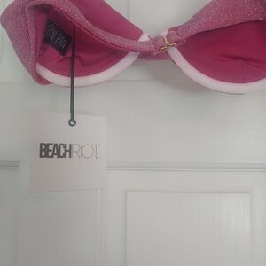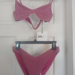 Stylish pink bikini set from Beach Riot. Perfect for beach days. Sparkly fabric.Sz Lg
