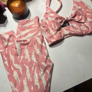 Stylish pink mixed print set by Beach Riot. Features a bowie top and matching bottoms.