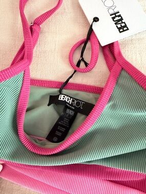 Beach Riot Pink and Mint Ribbed Bikini Top