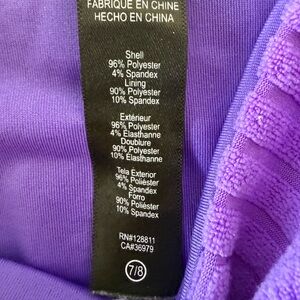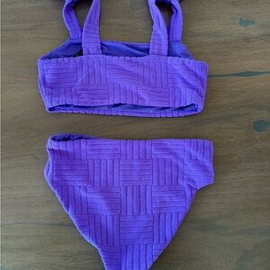 Chic textured bikini in bold purple for girls. Ideal for poolside fun. No snags or tears. Size 8 girls.