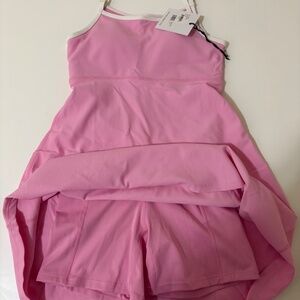 Beach Riot Raelyn active dress, pink with white piping, built-in spandex shorts, size small, new with tags