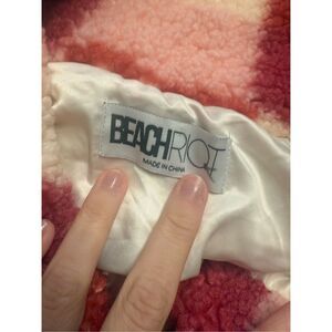 Beach Riot Red Pink Checkered Teddy Faux Sherpa Laurie Coat Jacket Size Medium