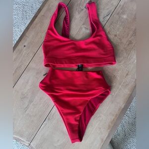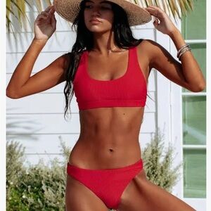 Beach Riot Red Ribbed Scoop Neck Bikini Set