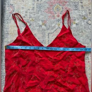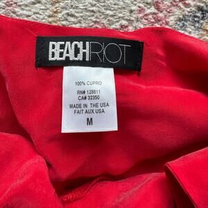 Stylish red swim coverup by Beach Riot. Features a deep V-back and star pattern. Perfect for beach days.