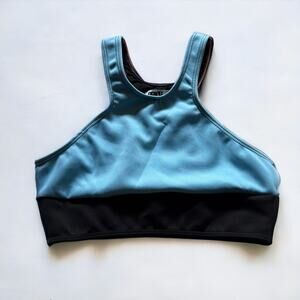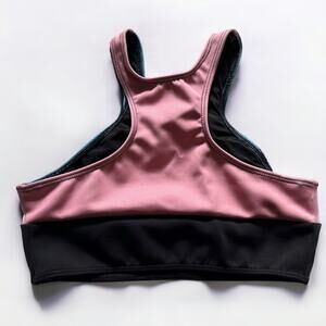 Super cool two-tone colorblock Rikki bikini top by Beach Riot in perfect preowned condition. Features a bright sky blue front and a coral pink back. Features a sporty longline style and topstitched edges. Fully lined.