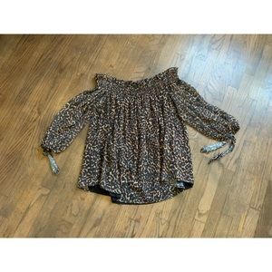 Off the shoulder top, has tie at sleeves leopard print. Lined. Size Med. worn once...
