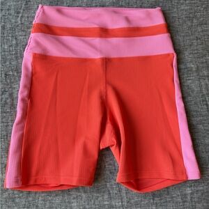 Beach Riot's stretchy rib fabric brings chic texture to these high-waist bike shorts in a color-blocked design.