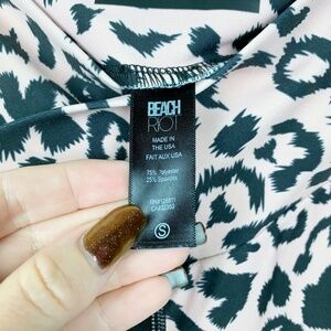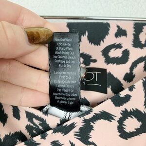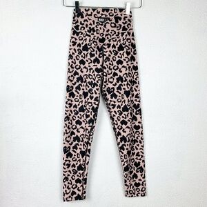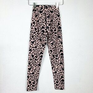 Cara legging in baby pink / black by Beach Riot Sport. All over leopard / heart pattern. Wrapped waist. High rise. 7/8 length.
