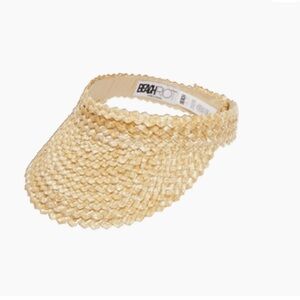 A stylish and practical accessory perfect for beach or outdoor adventures. Made from lightweight straw material, this wide-brimmed visor features an adjustable strap for a custom fit. The tan color and beach theme make it ideal for travel, activewear, or casual outings, while its breathable design ensures comfort in warm weather conditions. Perfect for women looking to shield their eyes from the sun while adding a touch of chic style to their look.