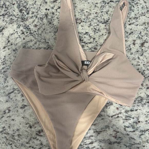Beach Riot Swimwear Dallas Ribbed Top & Solid Highway Bikini Bottoms Size M for both Sand color Bought brand new from FP $88 a piece - willing to sell separate.. just ask!