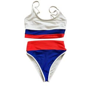 Beach Riot Swimsuit Bikini Beach Swim Surf S M Blocked Rib Red Blue White