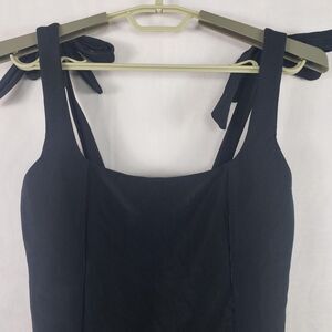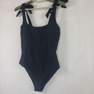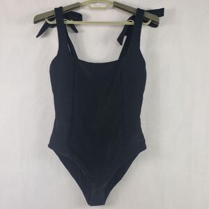 Beach Riot Swimsuit Womens XL Solid Black Ribbed One Piece Tie Shoulder Made USA