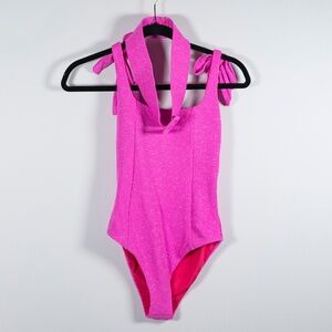 Beach Riot Sydney One Piece Prism Pink Sparkle Glitter Belted Swim Bathing Suit