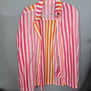 Beach Riot Striped Cotton Swim Cover Up Shirt Size L/XL Pink Orange White