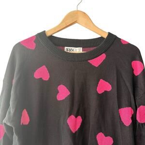 Beach Riot Tough Love Black Pink Heart Intarsia Knit Crewneck Beach Sweater Sz M