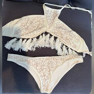 Tassel Beach Riot bikini. Good condition- only worn once. Off white with beautiful beading.