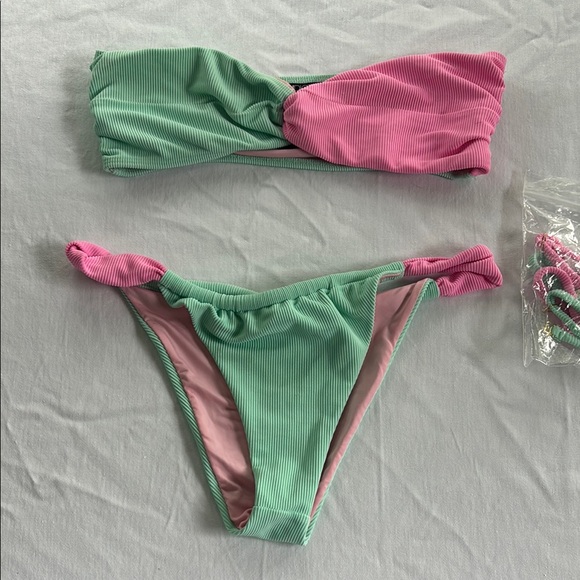 Worn once! Super cute beach riot bikini bought from a boutique. Comes with adjustable straps that can be added as well, bottoms have very adjustable cheekiness.
