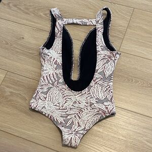 Beach Riot one piece swimsuit features a stylish leaf pattern in cream and black. Perfect for a day at the beach or pool. Never worn but without tags.