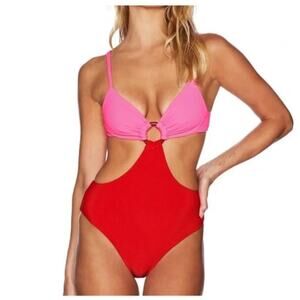 Beach Riot revolve Pink Red One-Piece Kirsten Swimsuit lipstick colorblock Sz M