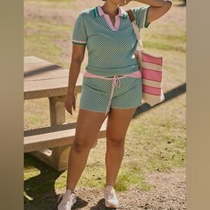 Beach Riot x Anthropologie Green and Pink Knit Shorts Plus Size 2X