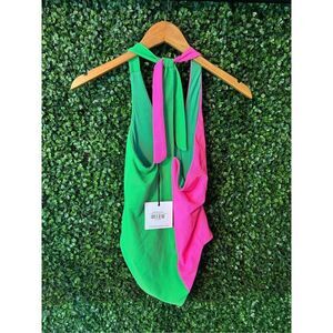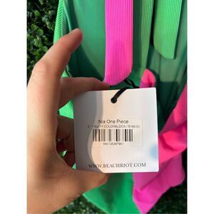 Beach Riot Nia Asymmetric One-Piece Swimsuit Watermelon Pink Green Small NWT