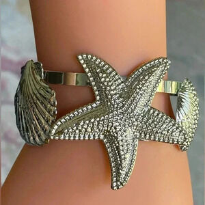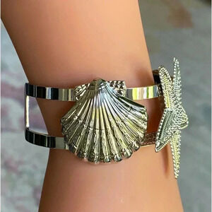 Beach Seashell Starfish Tropical Ocean Silver Tone Cuff Bracelet Bangle NEW
