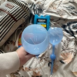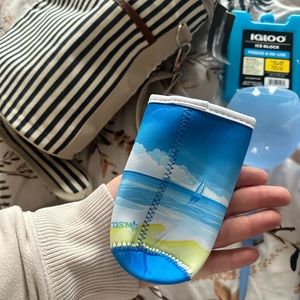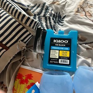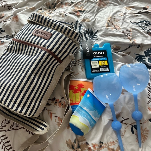 Ones with waterproof beach bag, two wine bottle coolers, 2 wine cups, two beach towels, etc. everything unused!