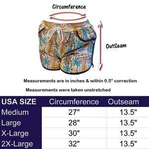 Brand new, with tags, comfortable and fashionable bathing trunks for young ladies. No lining. Elastic waistline with string to tie in the front. Two front pockets. Perfect for swimming in ocean on a beach vacation, or attending a fun pool party.