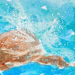 ‘Beach Splash 3’ is an energetic original one-of-a-kind handmade Seascape ocean splashing on rocks watercolor painting by Artist Tristina Dietz Elmes.