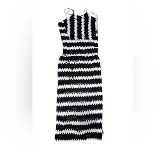 Ana Dress swim cover up Sz L Crochet Maxi 100% Polyester black and white Spaghetti Strap Lined