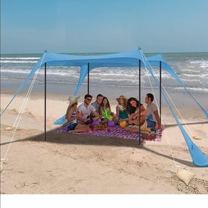 Beach Tent Sun Shelter UPF50+ with Sand Shovel, Ground Pegs and Stability Poles, Outdoor Shade for Camping Trips, Fishing, Backyard Fun or Picnics