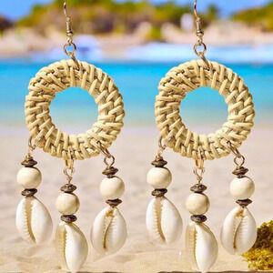 Dive into summer vibes with these stunning boho earrings! 🌞 Handcrafted with intricate woven hoops and adorned with natural seashell charms, they’re perfect for adding a touch of coastal elegance to any outfit. Whether you're strolling on the beach or attending a summer festival, these earrings are the ultimate accessory for a chic, bohemian look. 🏖️✨