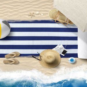 Beach Towel Navy Blue Cabana Stripes 100% Cotton