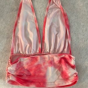 Tie-dye pattern Thick ties around neck Best for smaller chests *NWOT